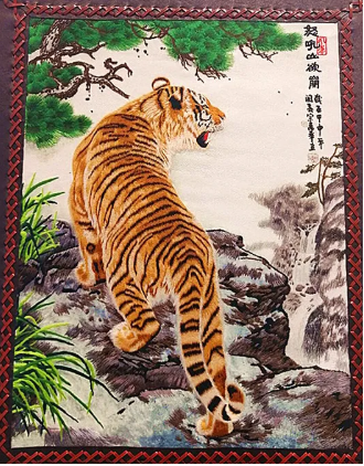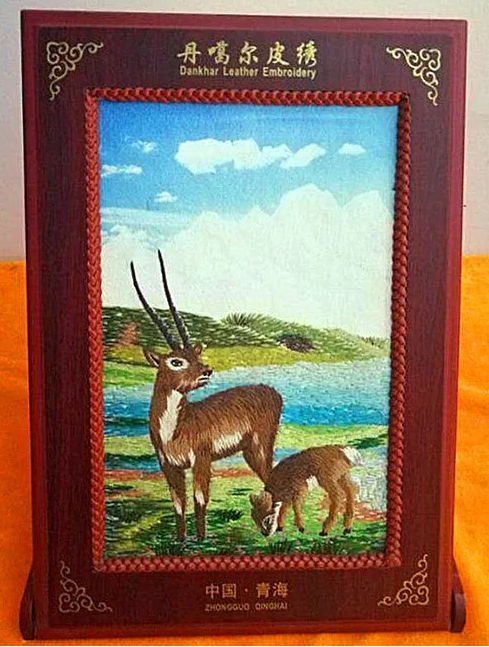 在漫长的历史进程中,湟源丹噶尔皮绣逐渐地吸纳了内地各种刺绣流派的技法,到明清时期,丹噶尔皮绣日见成熟,出现了一批运用丝线、羊毛、马鬃、皮绳等材料的皮绣工艺品。其内容包含山水、花鸟、人物、宗教等,画面朴实中见灵秀,粗犷中有细腻,颇具特色。