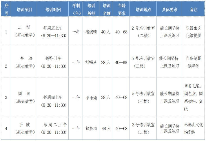 1、面向我市广大身体健康,能适应教学体能要求的市民招生,具体要求、培训名额等详见课程表。
